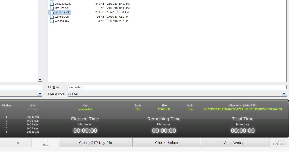 Do note that your file name can be anything – but you need to make sure that the key file size is greater or equal to the file you want to encrypt. I found it weird but that’s how the One-time pad encryption works.