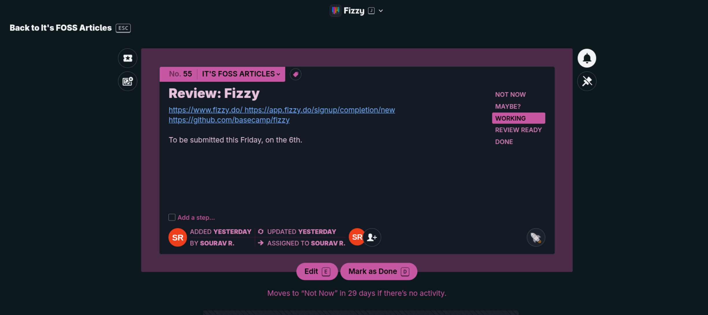 This is where Fizzy comes in. The new tool we are using for task managements these days.