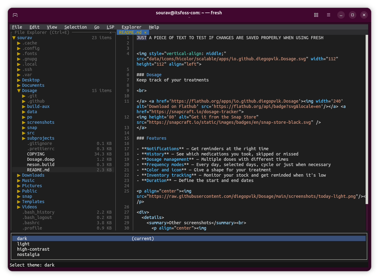 I tested Fresh on Ubuntu 25.10, and it was nice. Editing files worked as expected. Standard shortcuts like Ctrl+S for saving and Ctrl+Z for undoing mistakes work without issues. Mouse navigation works well for interacting with the text and the interface.