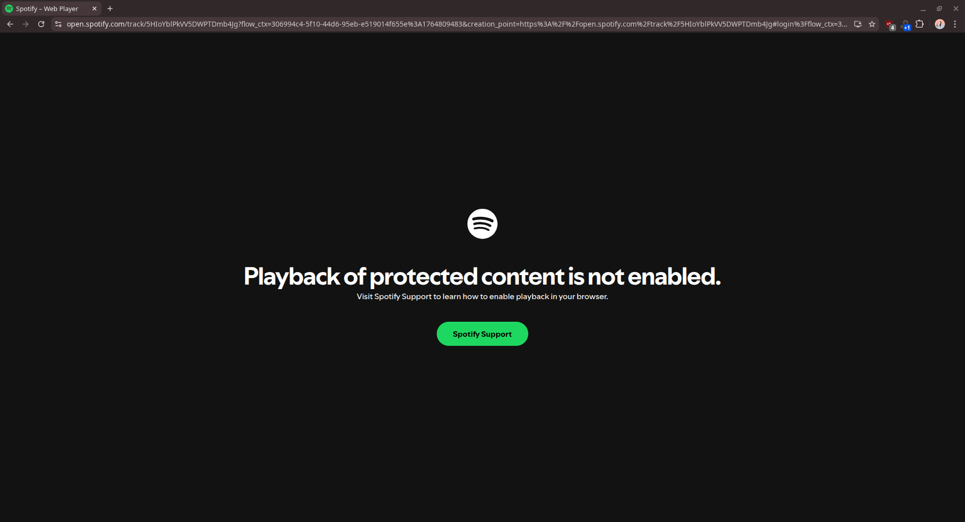 Since it doesn't include support for Widevine or other DRM solutions, Helium can't be used for Spotify, Netflix, Prime Video or other services that require it.
