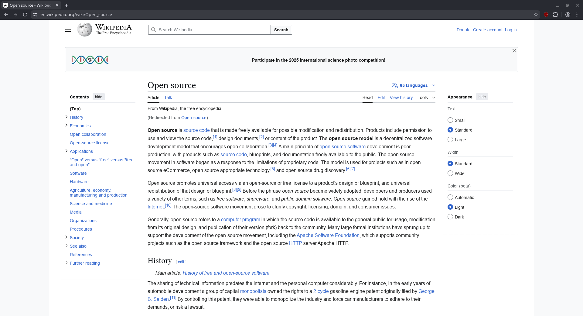 It also takes you straight to the most relevant result in certain cases. For example, to search Wikipedia, one could type "!w open-source" and jump straight to the article on the topic.