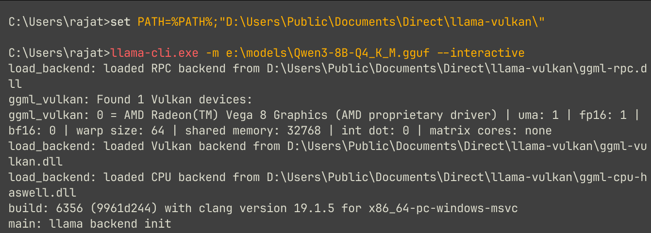llama-cli.exe -m e:\models\Qwen3-8B-Q4_K_M.gguf --interactive