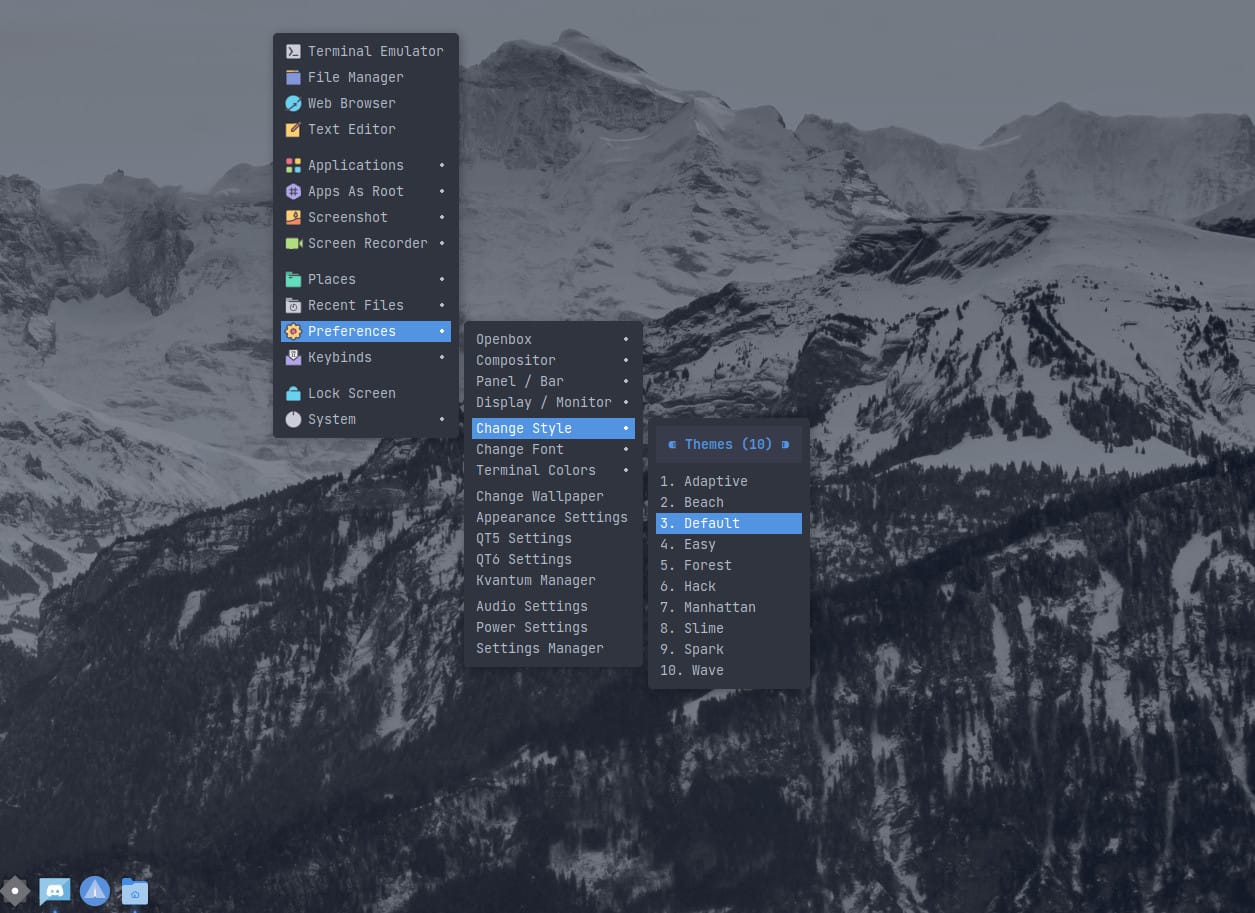 But, even without it, you can change the look and feel using the default styles in the right-click preferences menu that you see here (with Openbox window manager):