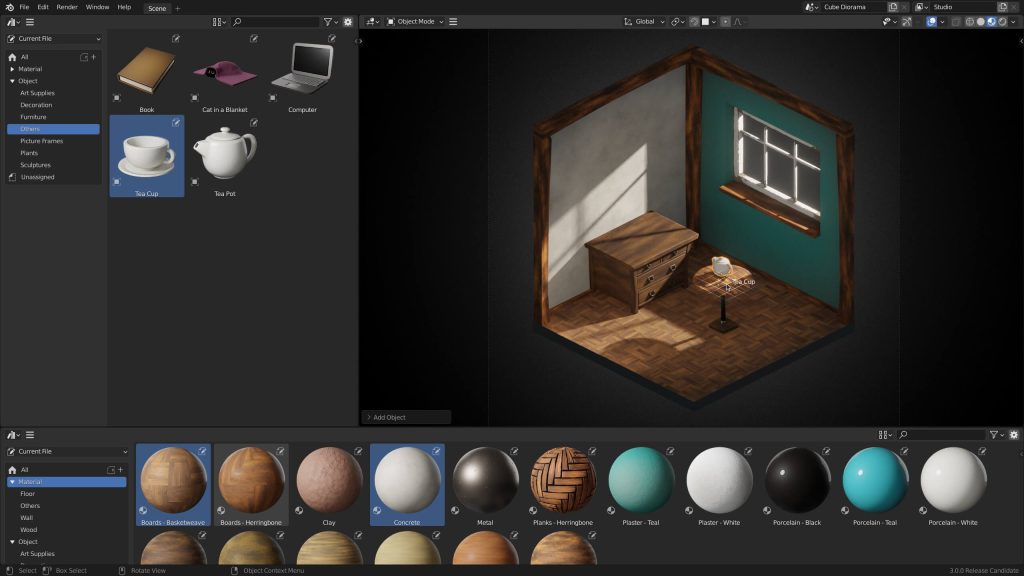 A notable feature of many other 3D animation software suites, the asset browser is set to become a key component in Blender 3.0’s workflow. With support for materials, objects, and world datablocks, it offers an astounding array of features for its debut release. As expected, drag-and-drop is supported out-of-the-box and works surprisingly well.