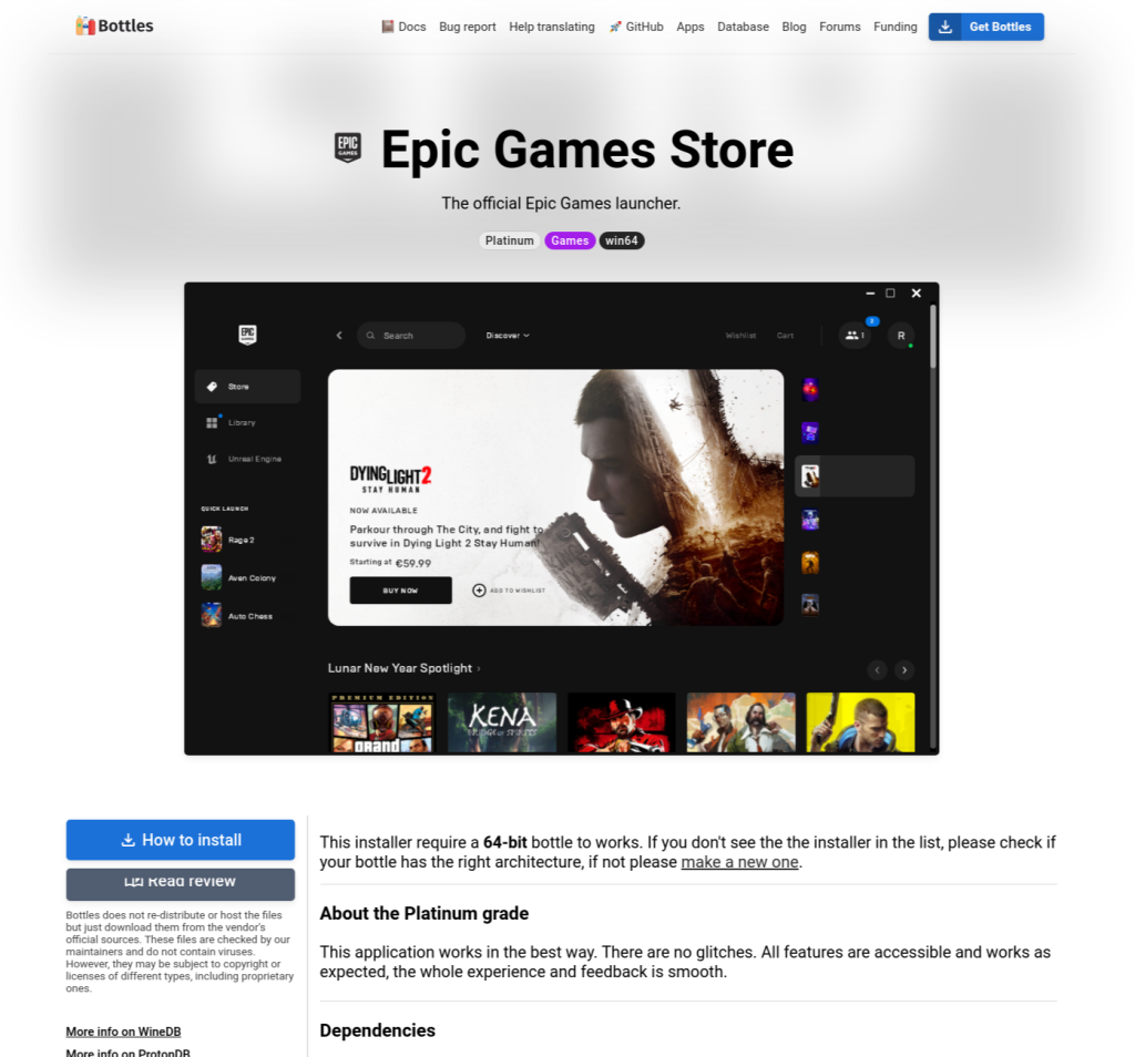 An important point to note is that not all installers will work flawlessly. Thus, the devs have introduced something called “grades” that refers to how smooth the installed program will function. The grading scale ranges from Bronze to Platinum and is very similar to how Wine’s compatibility is rated.
