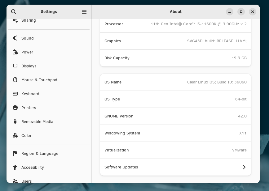 In a surprising move, it looks like the latest release of Clear Linux (Build: 36060) includes GNOME 42 (stable).