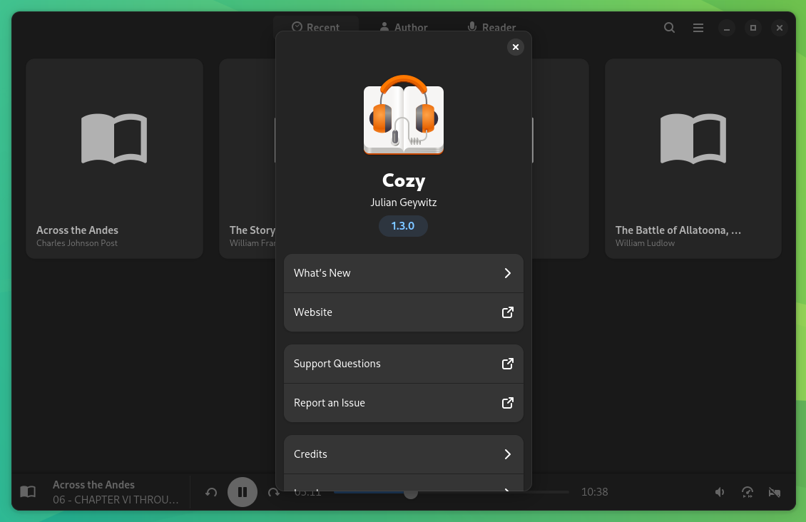 If I were to use only one word to describe the user experience on Cozy, that word would be โeffortless.โ On my Fedora 41 system, I downloaded four public domain audiobooks from LibriVox to check out the capabilities of Cozy, and it just worked out of the box.