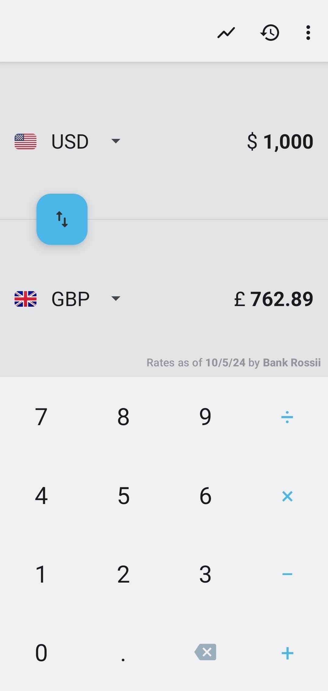 The user interface is easy to get around; I just had to select the currencies and enter the numerical value in the field. I could even swap the currencies by using the switcher (blue button).