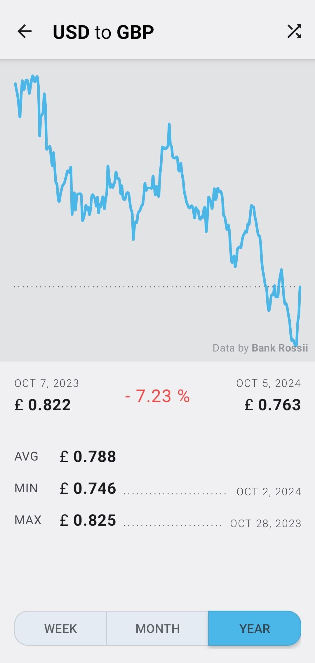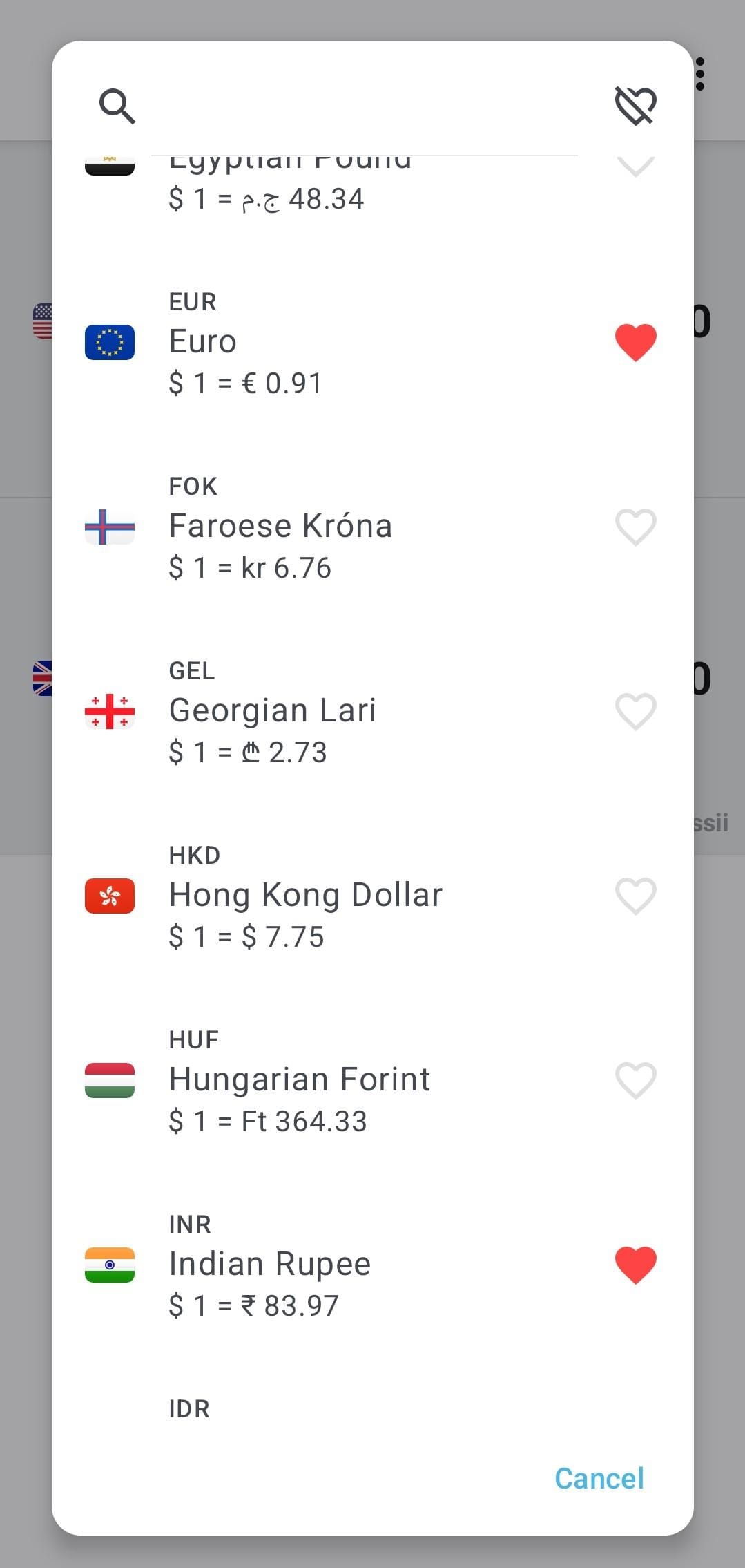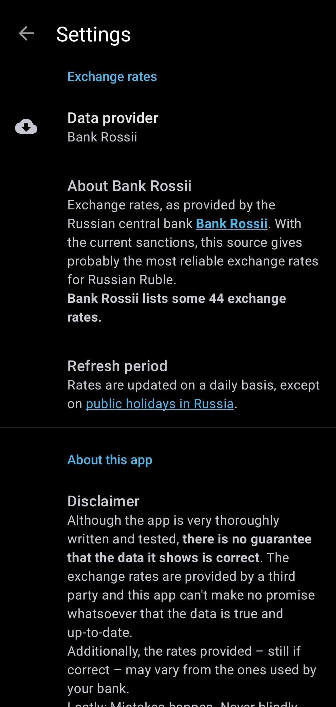 There is also the ability to add currencies as favorites so that I don't have to search around for them using the search bar (just tap on the heart). The default data provider is Bank Rossii, with the developers recommending it for getting the most accurate rates for the Russian Ruble.