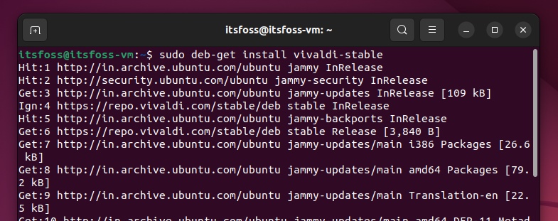 Now, if you set up the deb-get tool on your system (setup instructions at the end of this article), you can easily install Vivaldi using the following command: