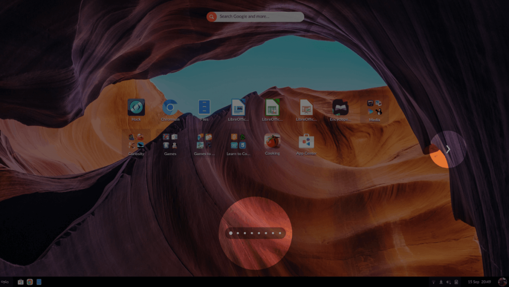 So, with Endless OS 4.0, additional arrows and icons have been added to highlight the presence of multiple pages and app grids. You should see that there are more apps to explore if you switch pages on your desktop.
