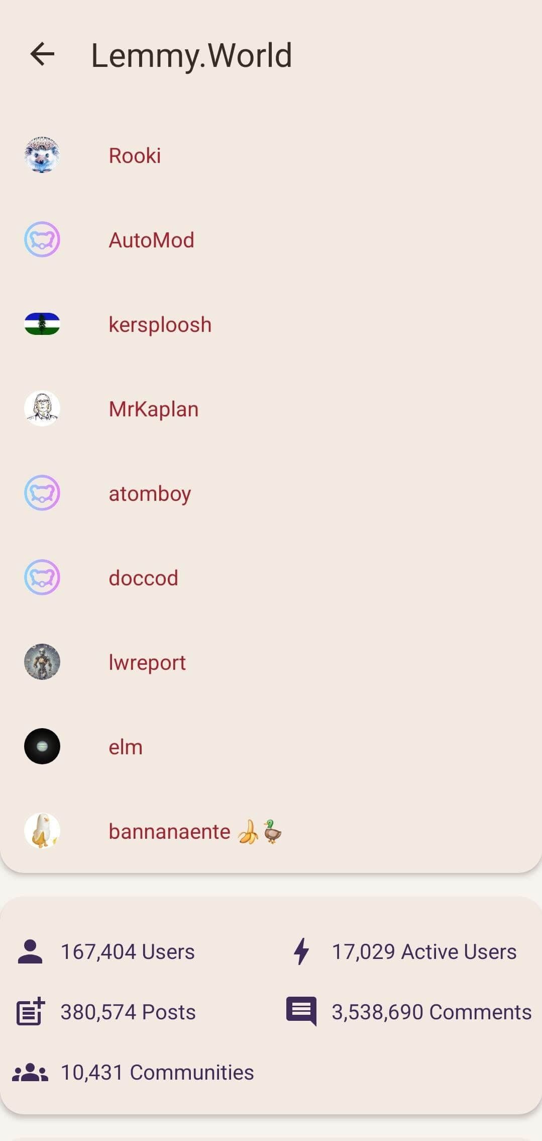 I could also see details of the Lemmy instance I was logged into from the sidebar menu, with key metrics like total users, active users, the number of communities and more.