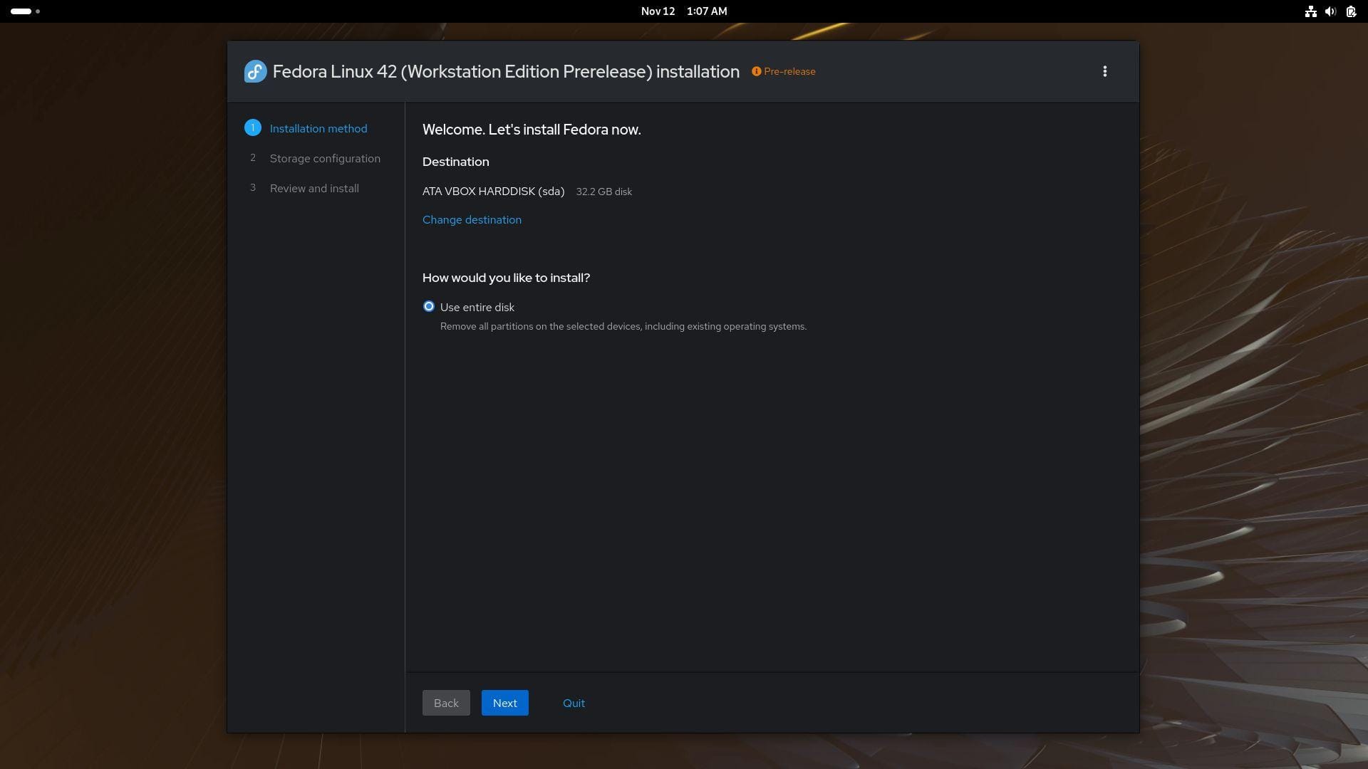 Meanwhile, you can test out the pre-release version by downloading the Fedora Workstation Live ISO (GNOME only) for virtual machines. Just ensure that you don't install the demo image on bare metal for production/general use, as it is a testing image after all.