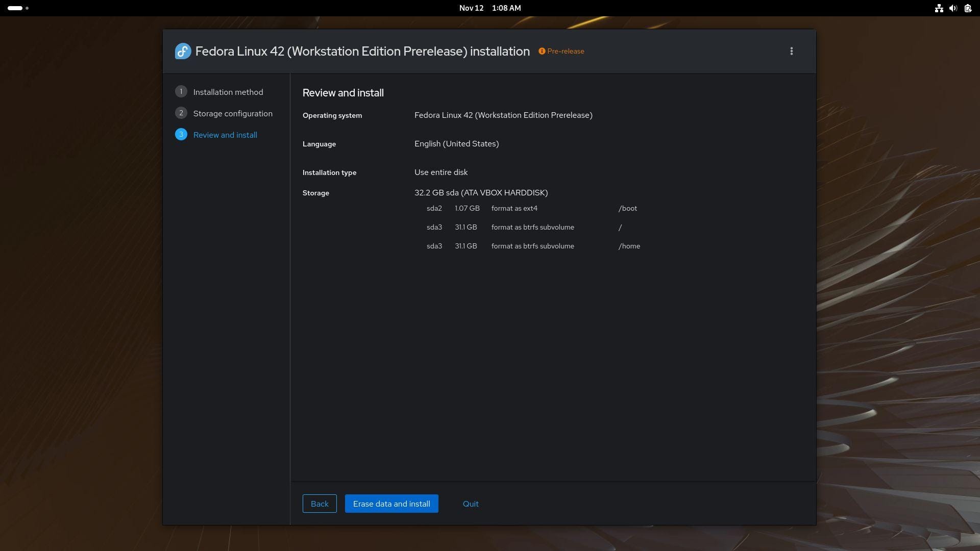 Overall, my experience with the near-final version of Anaconda Web UI was great. I didn't feel lost throughout the process, and even though I didn't really test out its disk management features, it was a very satisfactory trial for me.