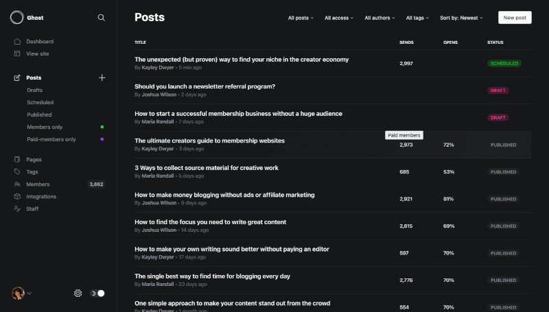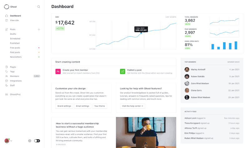 Ghost made it pretty simple to focus on publishing content without any unnecessary clutters. But, you still need to know and get some insights on your members/posts to see how everything performs.