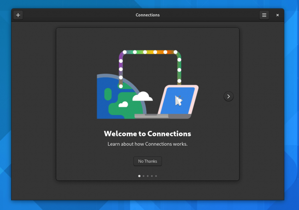 A new “Connections” app has been added to connect to remote computers no matter the platform.