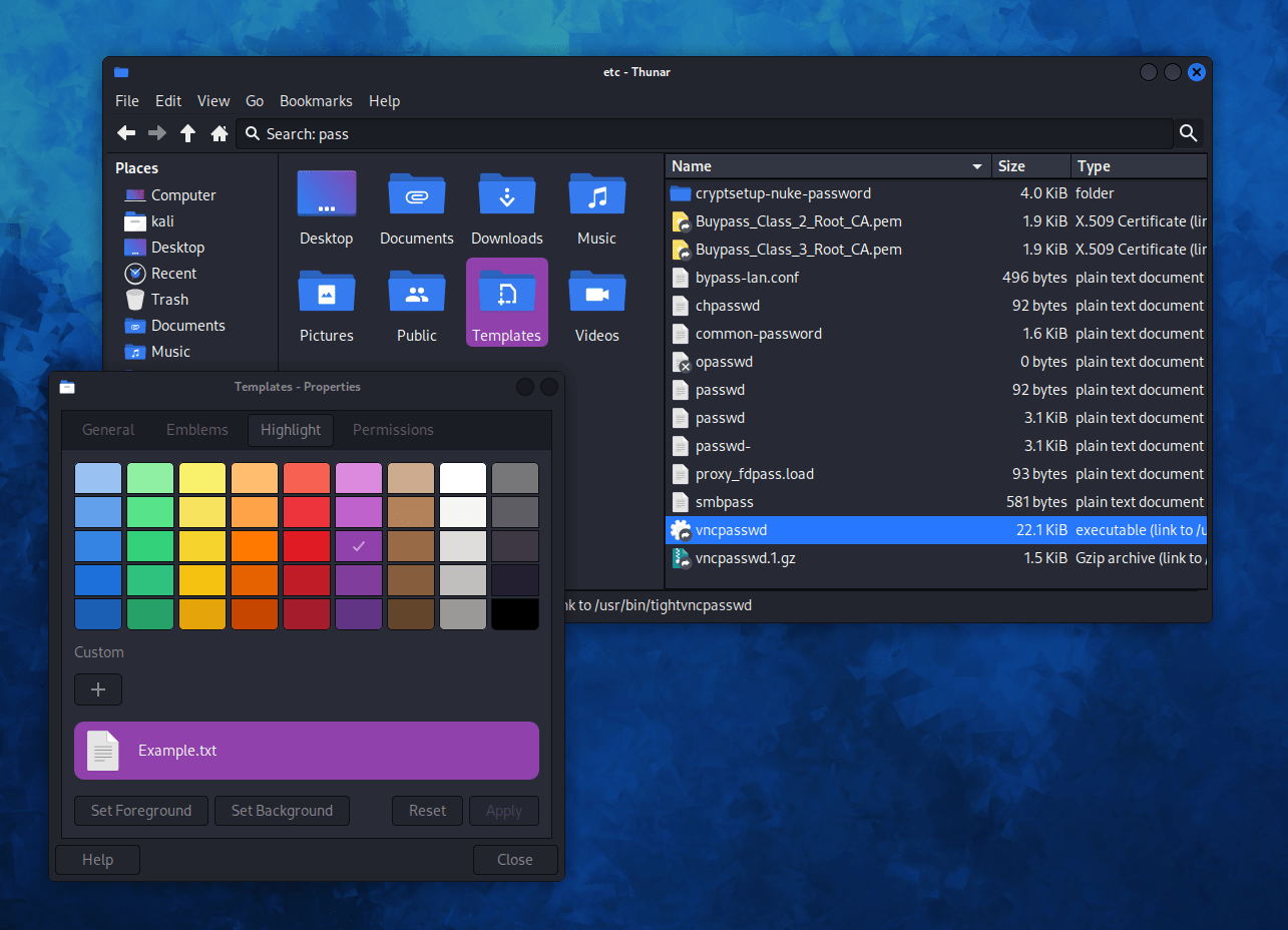 The main Xfce highlights for Kali include; support for panel profiles, better UI scaling support, and improvements to Thunar, the file manager.