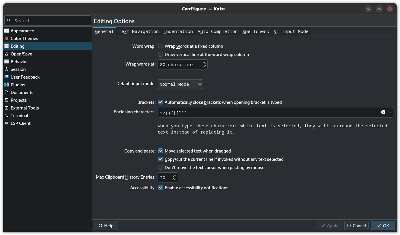 Finally, apart from all the usual code editing features, Kate also provides a wide range of control over the application thanks to its well-organized settings menu, allowing for hassle-free changes.