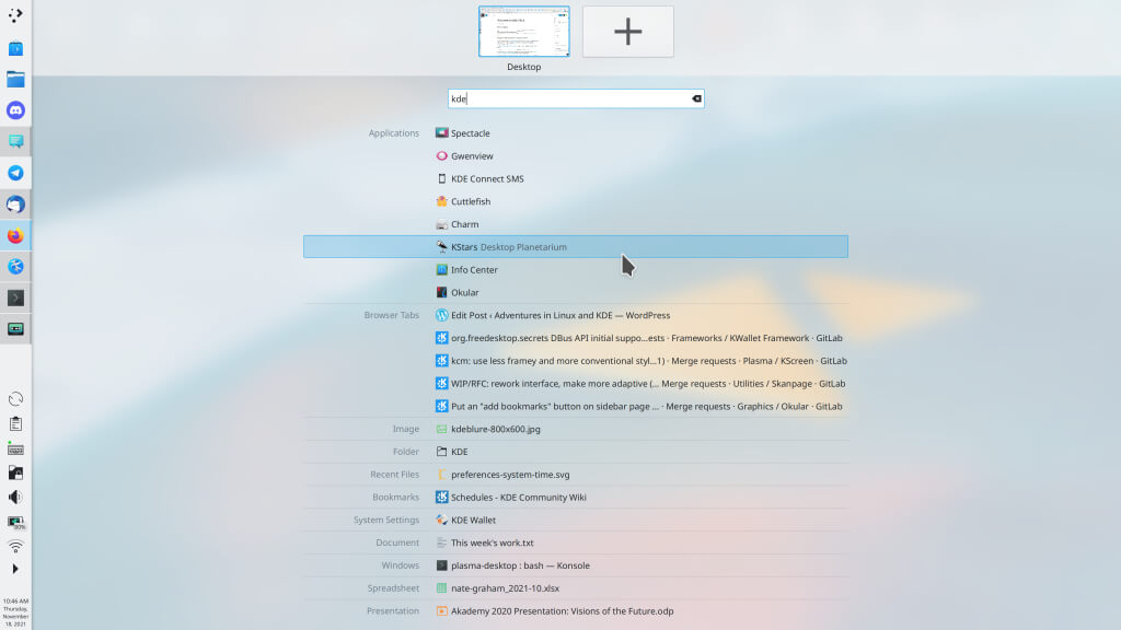 As a result, users will now have access to a simple and unified place to switch windows and activities. Additionally, it features built-in integration with Krunner, giving some impressive capabilities. These include: