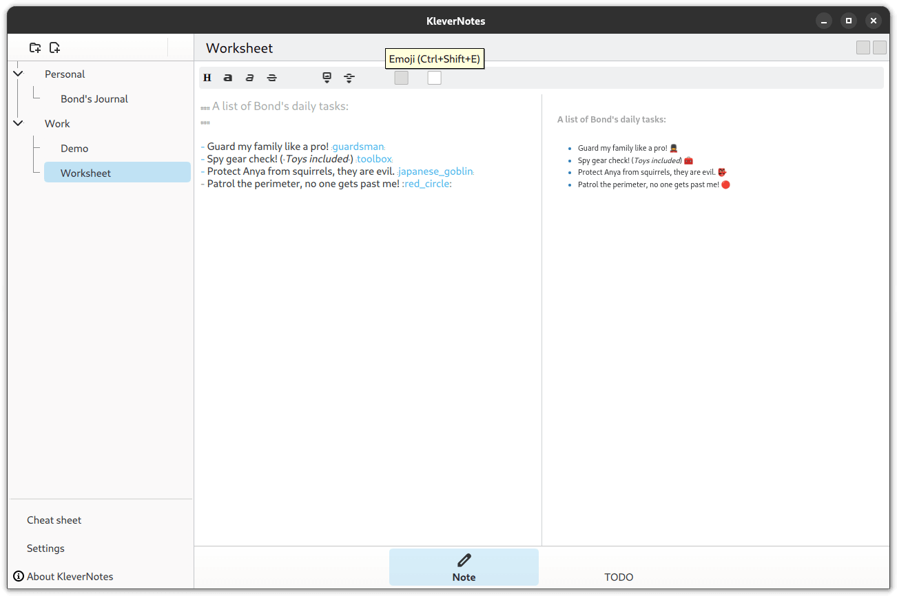 Other than its โkleverโ name, the KleverNotes app has support for plugins that extend basic Markdown functionality with useful opt-in tools like syntax highlighting, quick emojis, note linking, and PlantUML (for creating diagrams).