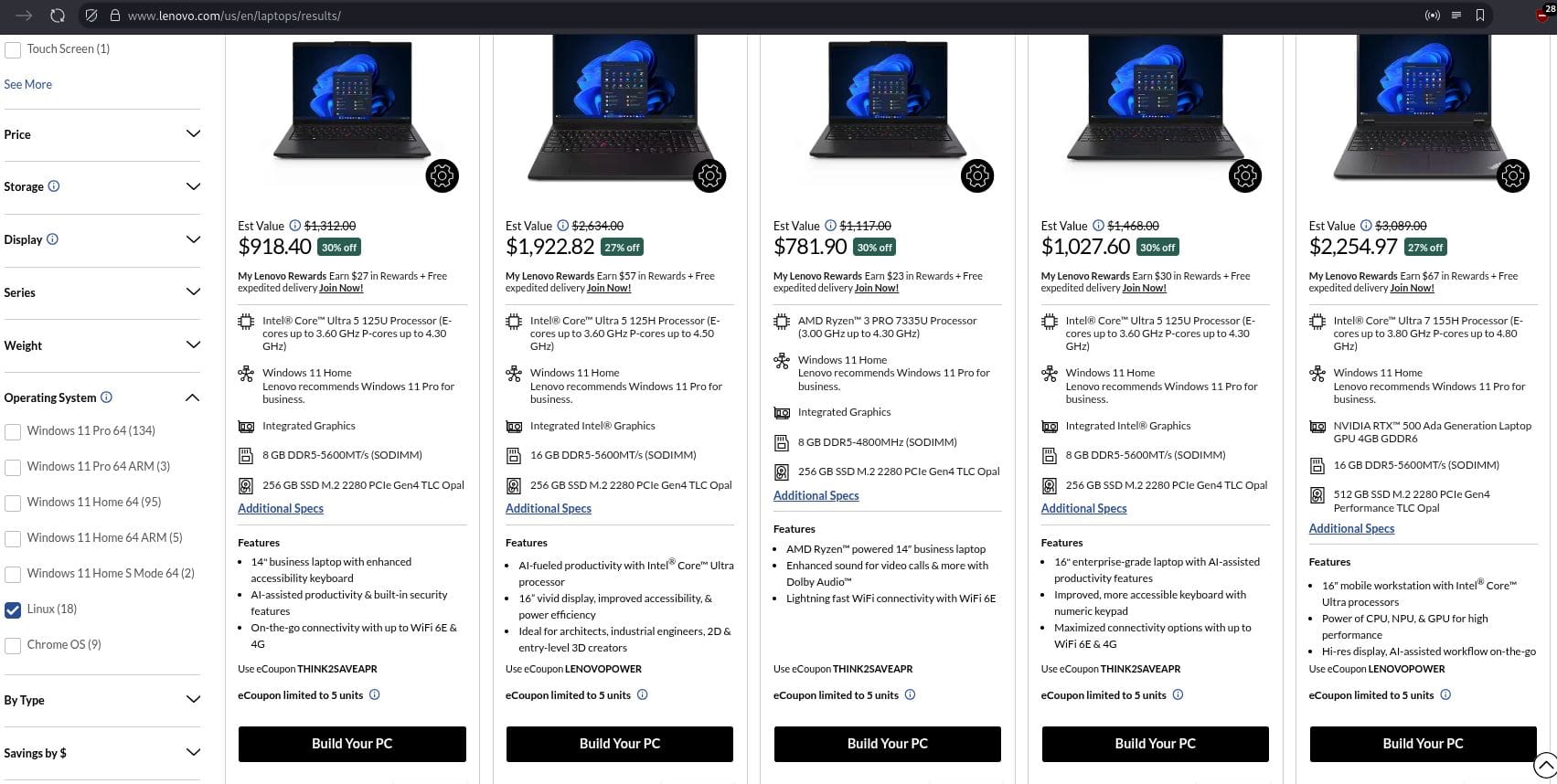 Yes, it's as simple as that. You can do the same for the various official online regional storefronts that Lenovo runs to see whether Linux-based operating systems are being offered on their laptops in your country.