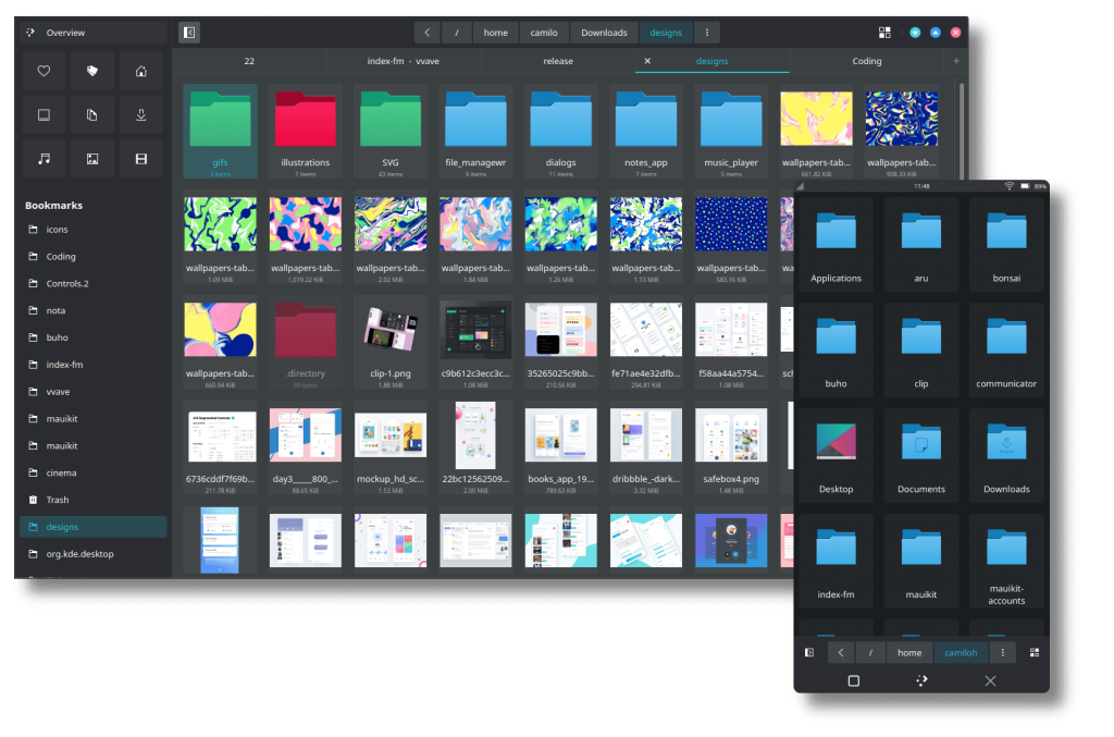 Now, five years later, we are finally seeing Kirigami really being taken seriously as a UI toolkit for desktop-class apps, demonstrated perfectly in the file manager Index. This beautiful app is the default file manager of Plasma Mobile and Nitrix Linux, and for good reason.