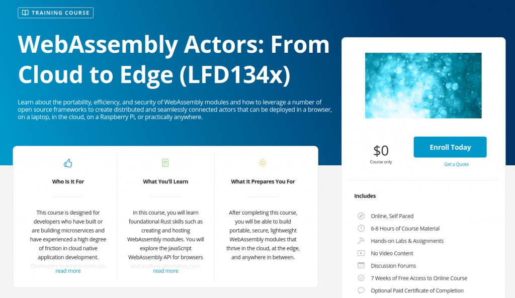 The latest course – WebAssembly Actors: From Cloud to Edge mentions: