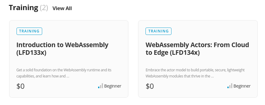 As of now, there are two free WebAssembly training courses by The Linux Foundation. One deals with the introduction to WebAssembly and the second one dives a bit deeper.