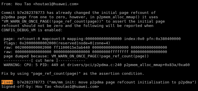 Example of how the Fixes: tag is used on the left, the dataset parameters used by Jenny on the right.
