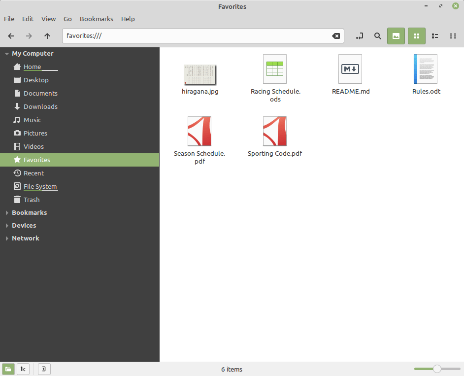 After adding files as Favorites a small star icon will appear on the right side of the panel, which is actually the favorites applet. By clicking it you can easily access all the files you added as favorites.