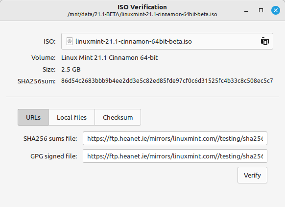 A cool thing to note is that the URLs to the SHA256sum and GPG files are filled in automatically for Linux Mint and Ubuntu ISO images.