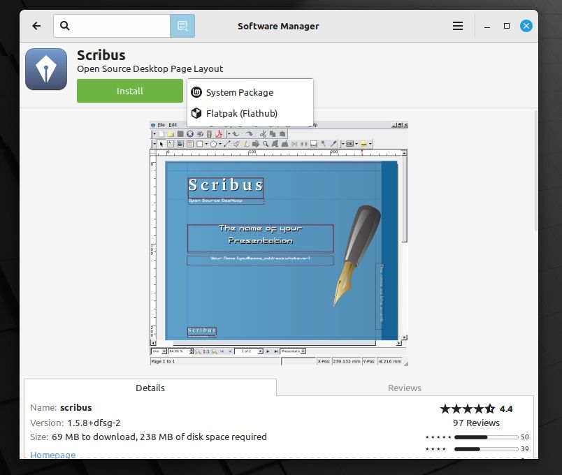 It is also easier to select between the system package and Flatpak for an app next to the installation option. The option existed nearby the details section previously.