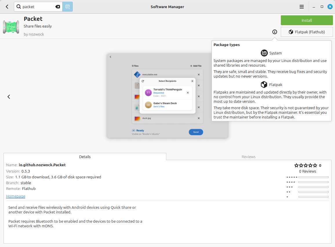 The Software Manager welcome screen looks better than before with an improved visual design. That is coupled with a "Help" tooltip (looks like a question mark) that was added to explain the difference between Flatpak and system packages, making package selection much simpler for users.