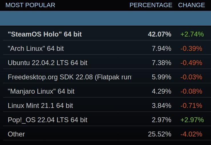 Not really, “SteamOS Holo” was the actual leader in terms of specific Linux distros.