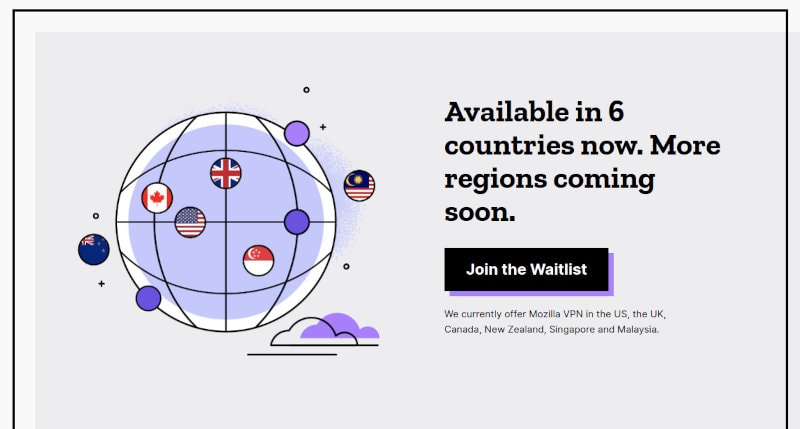 Mozilla VPN service is currently available to users in the US, UK, Canada, New Zealand, Singapore, and Malaysia.