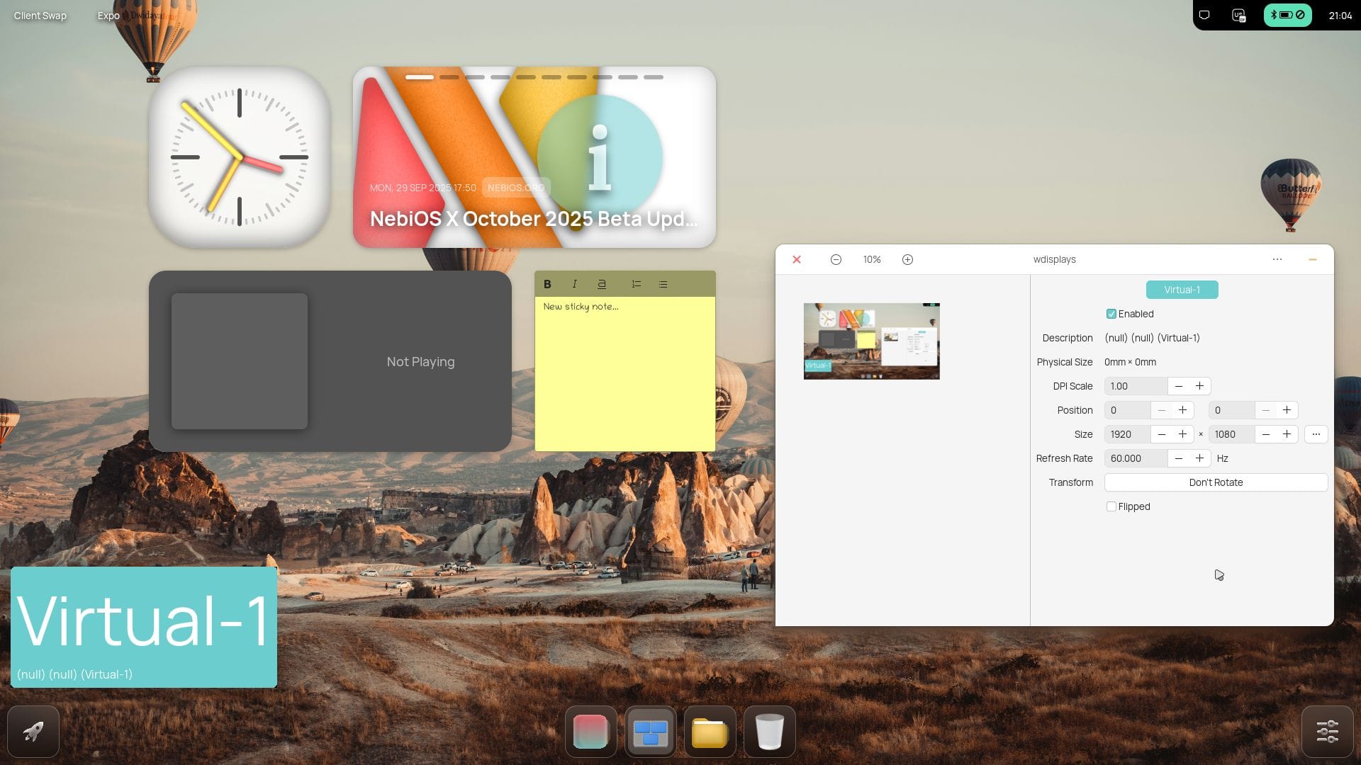 I tested the NebiOS X "Cappadocia" RC4 release on a virtual machine using GNOME Boxes on Fedora 42. Sadly, there was noticeable lag and visual glitches; bare metal installations should deliver much better performance.