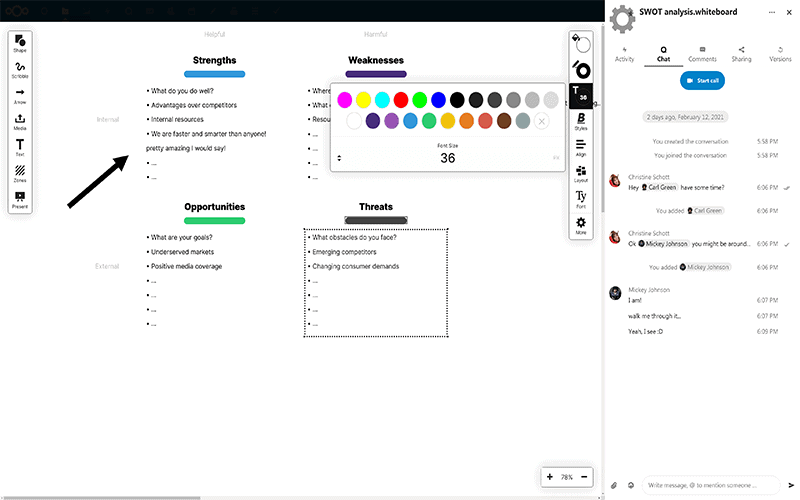 Now, users also have the ability to present a Whiteboard to other participants in a call, focus on a specific part of the whiteboard and more.