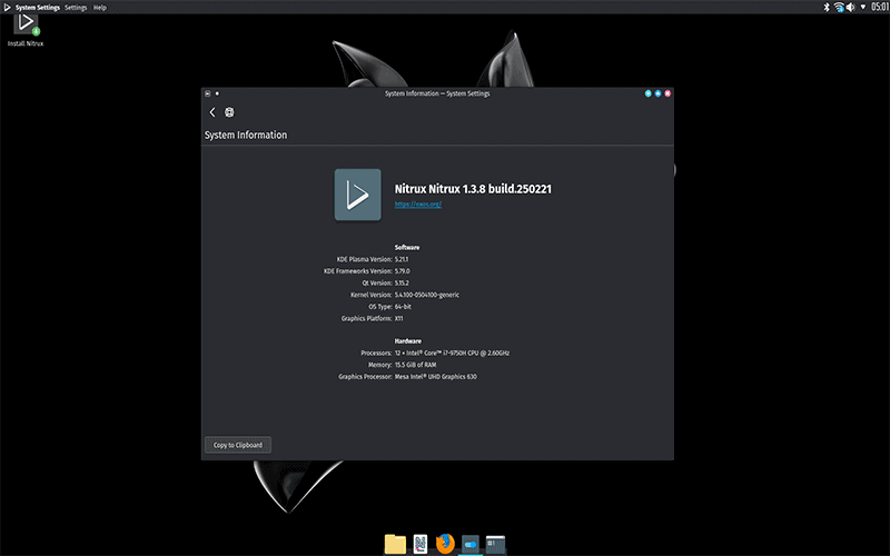 Nitrux 1.3.8 is equipped with the latest suite of KDE products that include:
