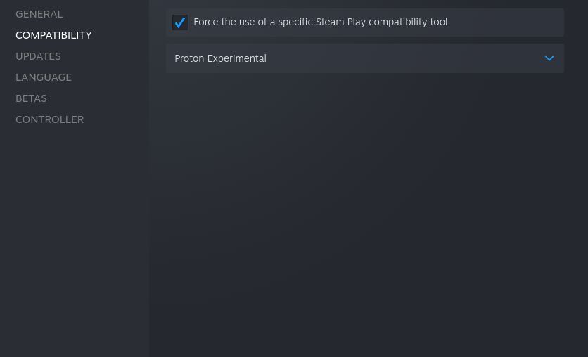This can be done by right-clicking on the game and selecting Properties. Then under Compatibility, you need to tick the “Force the use of a specific Steam Play compatibility tool” checkbox. Next, choose Proton Experimental from the drop-down menu.