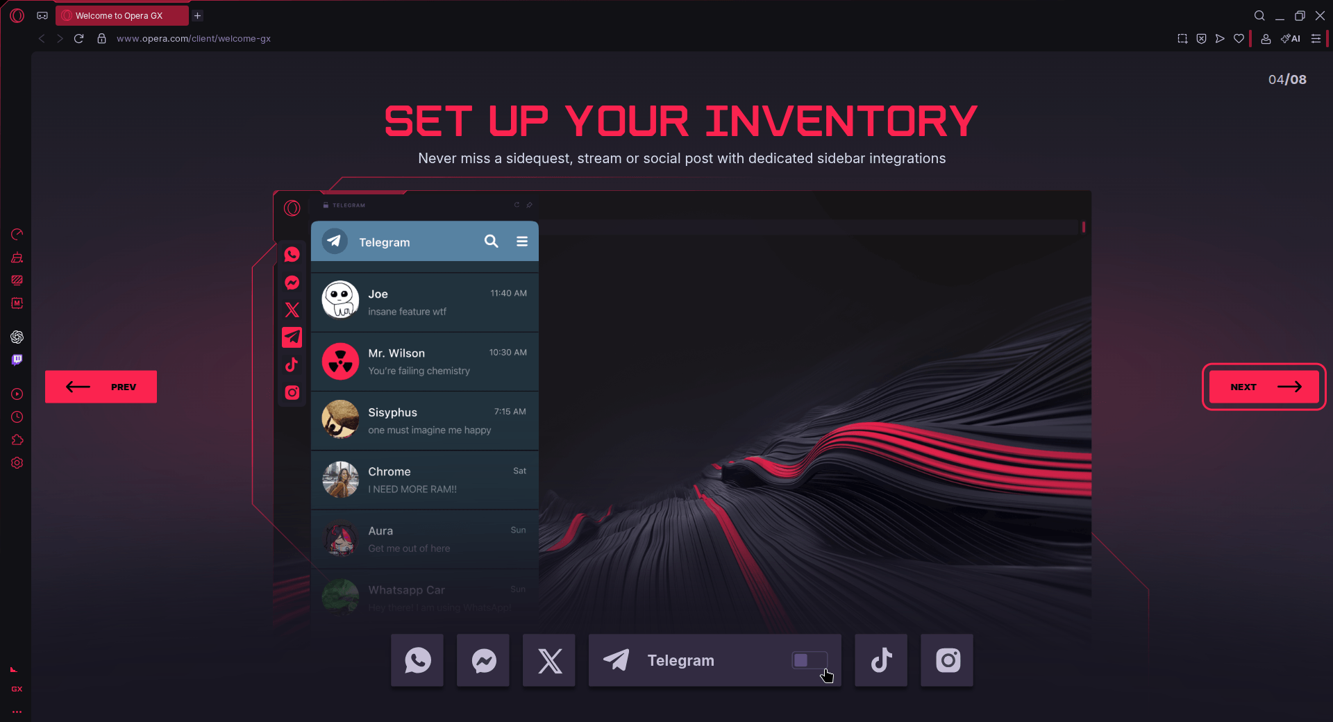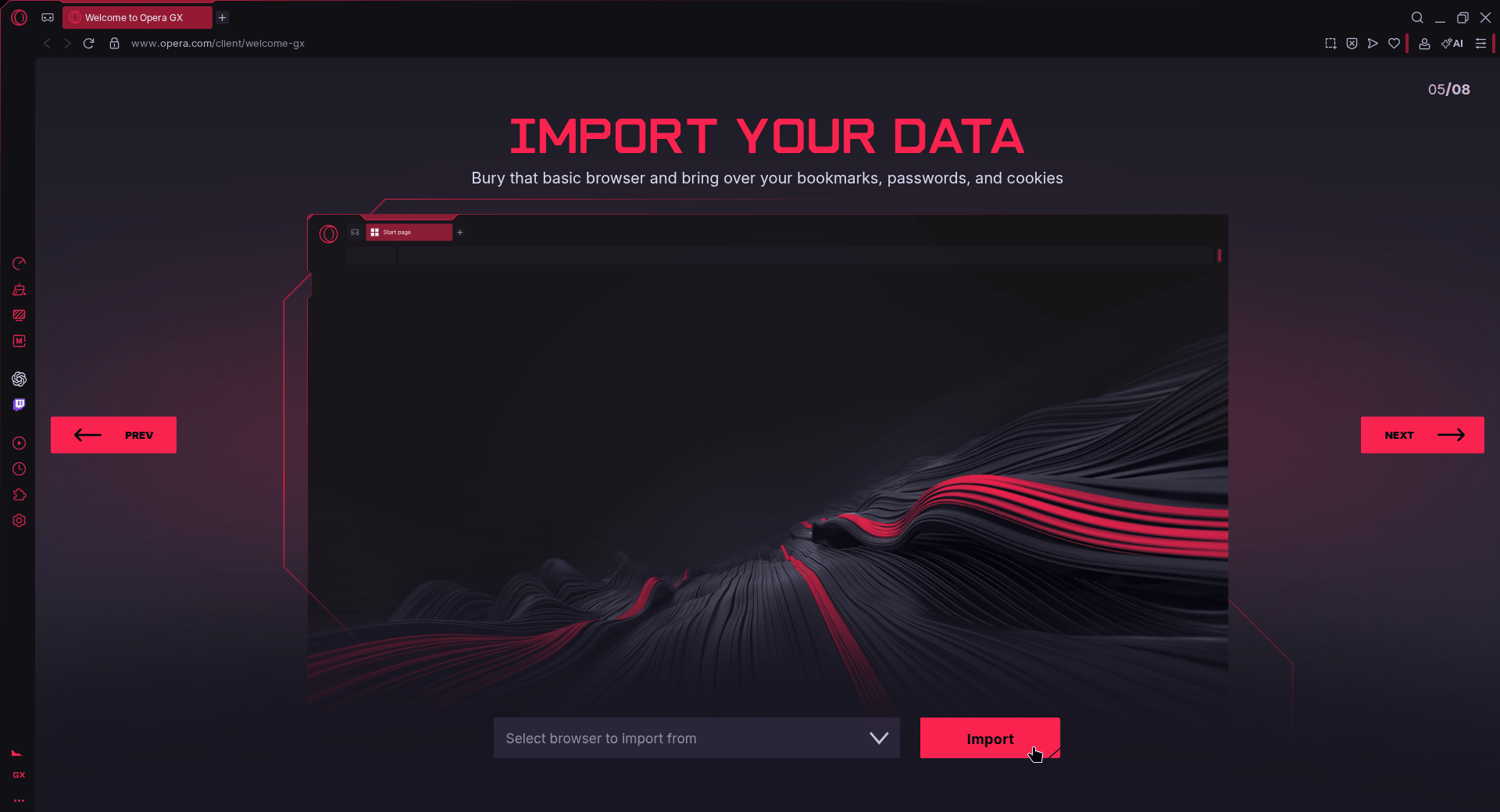 I could also enable a bunch of sidebar integrations for Telegram, X, Instagram, and so on, but I left those turned off. Opera GX even asked me to import data from another web browser, but it failed to detect Vivaldi, which was already installed.