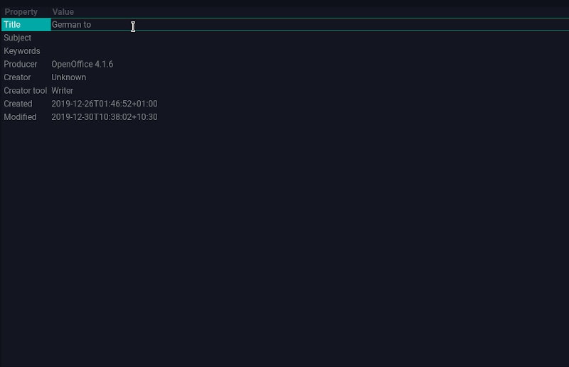 - Allows you to edit Keywords, Subjects, and dates in document info