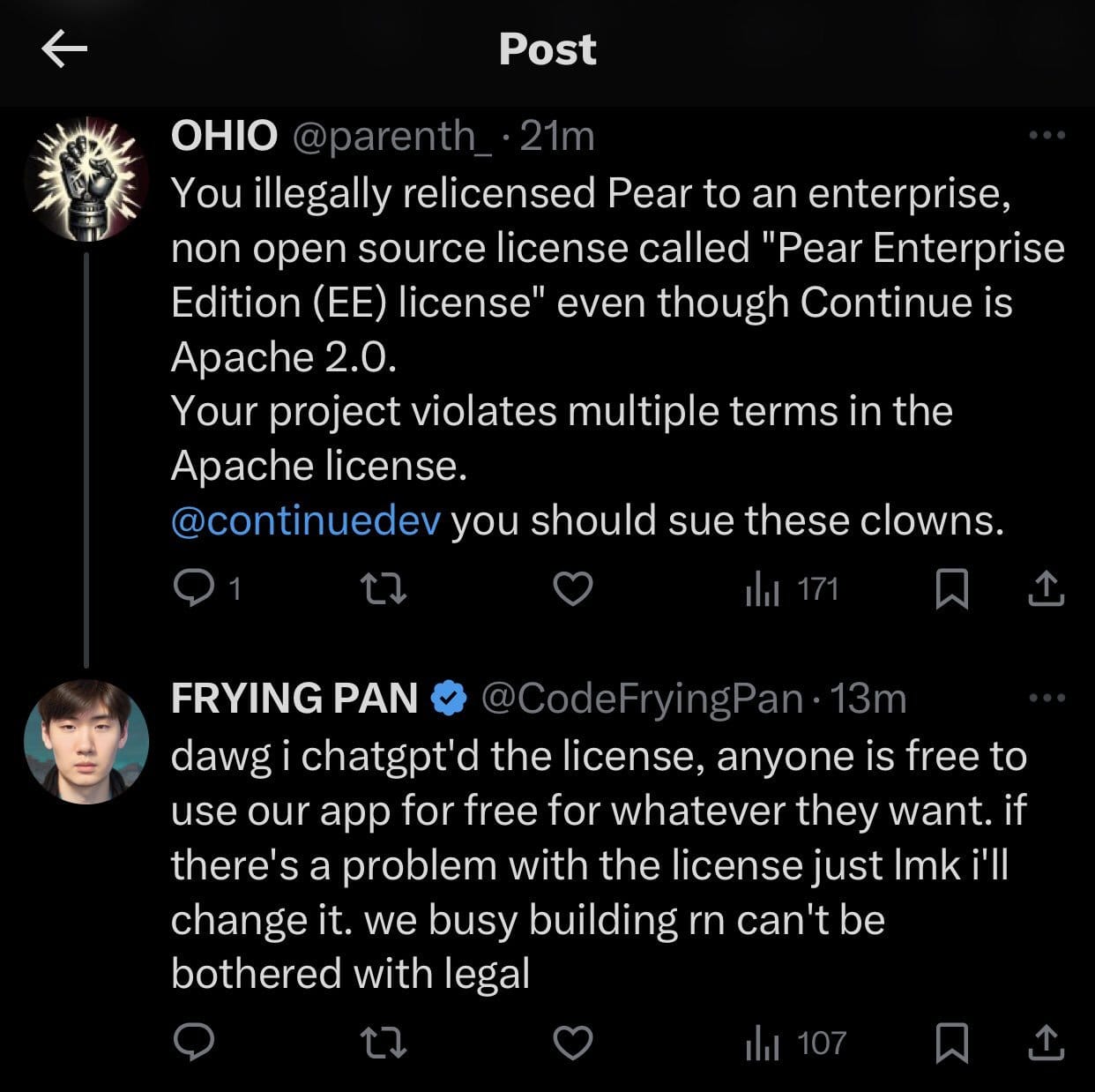 And, when a fellow X user asked one of the co-founders, they replied that they simply ChatGPT'd the license, with an awful tone: