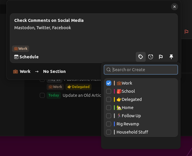 I created a few to handle my daily tasks; the project creation process was quite straightforward, with options to add emojis or color to them.