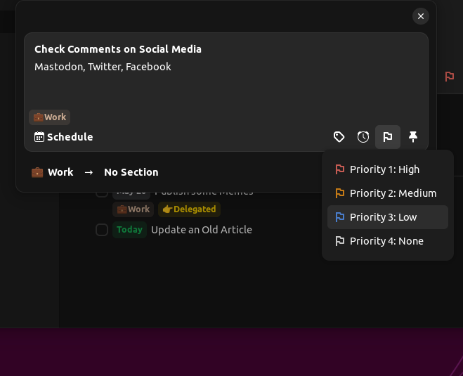 I also liked the fact that I could add sections to a project. With that, I could neatly organize my high-priority tasks and my low-priority tasks into separate subsections.