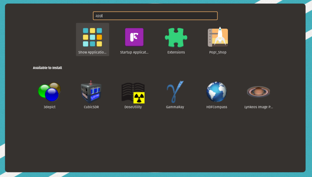 It also lets you quickly search for an application (or filter them as per your search query). Not just limited to the applications installed, but it will also display the applications that can be installed using the Pop!_Shop.