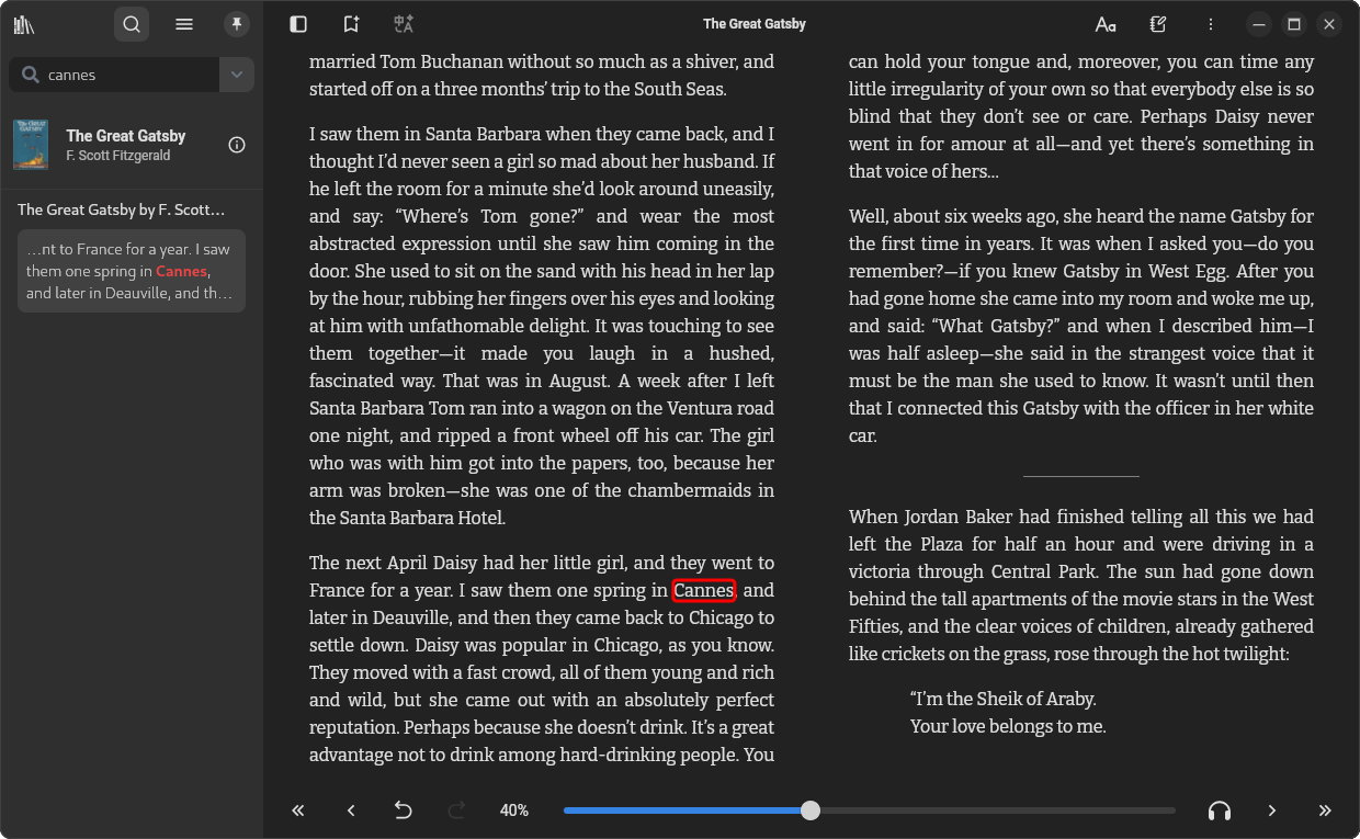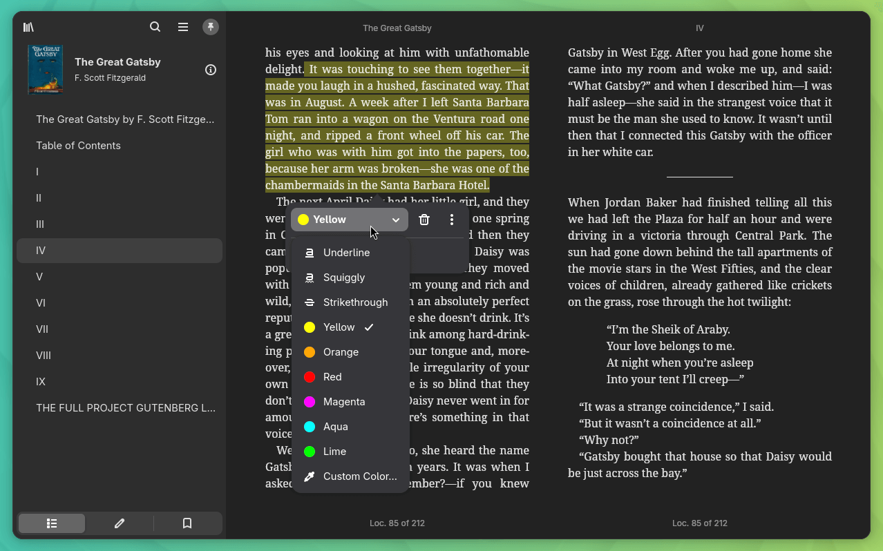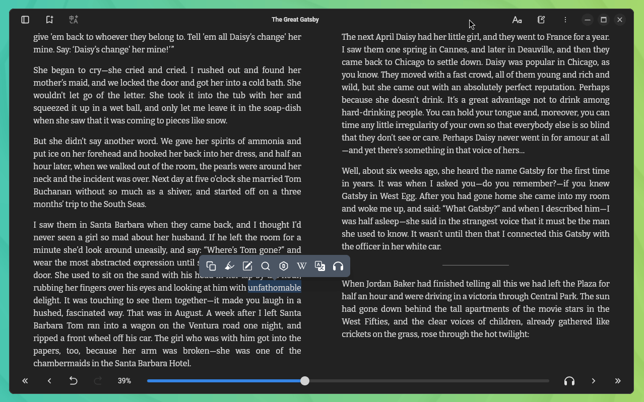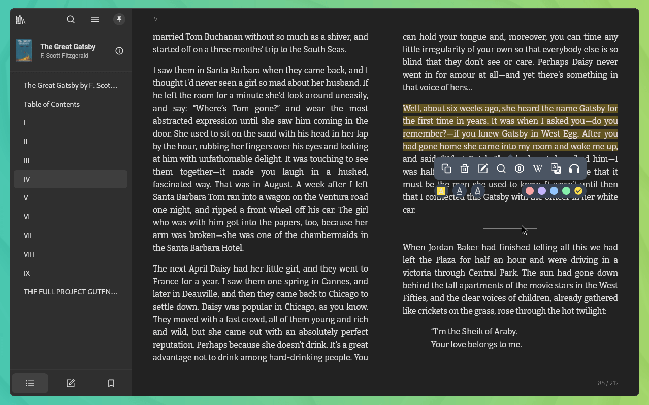 There is also something called "Parallel Read," which allows you to view two books or documents side by side. This can be particularly useful for comparing texts, language learning, or referencing multiple sources at once, giving you flexibility that Foliate doesn’t offer.