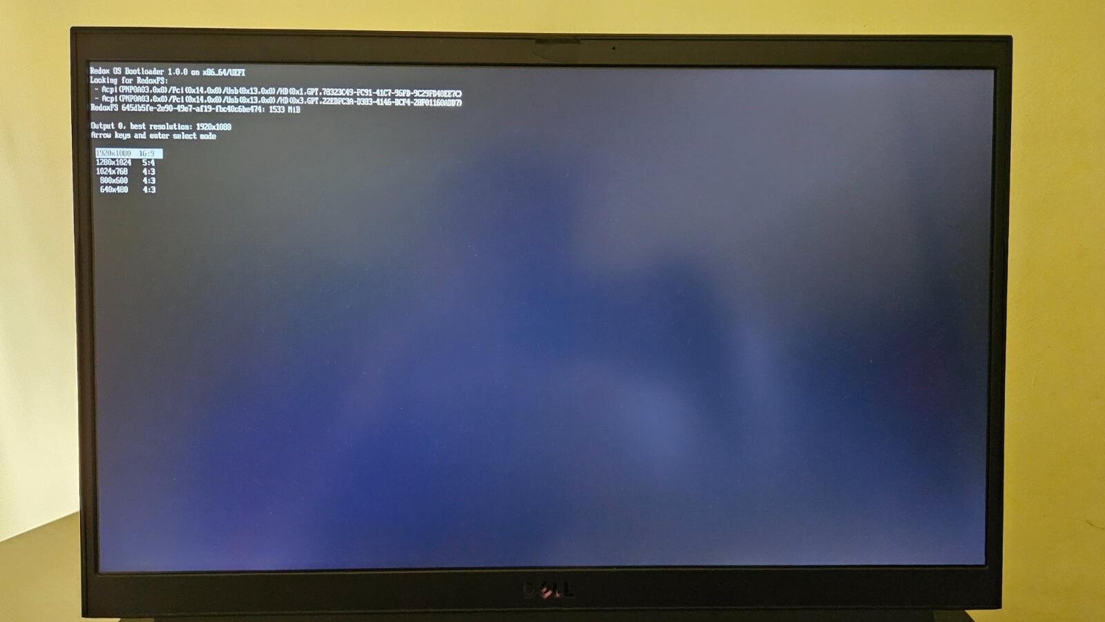 I ran the latest demo image of Redox OS on my Dell G15 G5530 laptop by flashing the live ISO on an external SSD. On boot, I was asked to select a screen resolution, and after confirming that, the initialization process began.