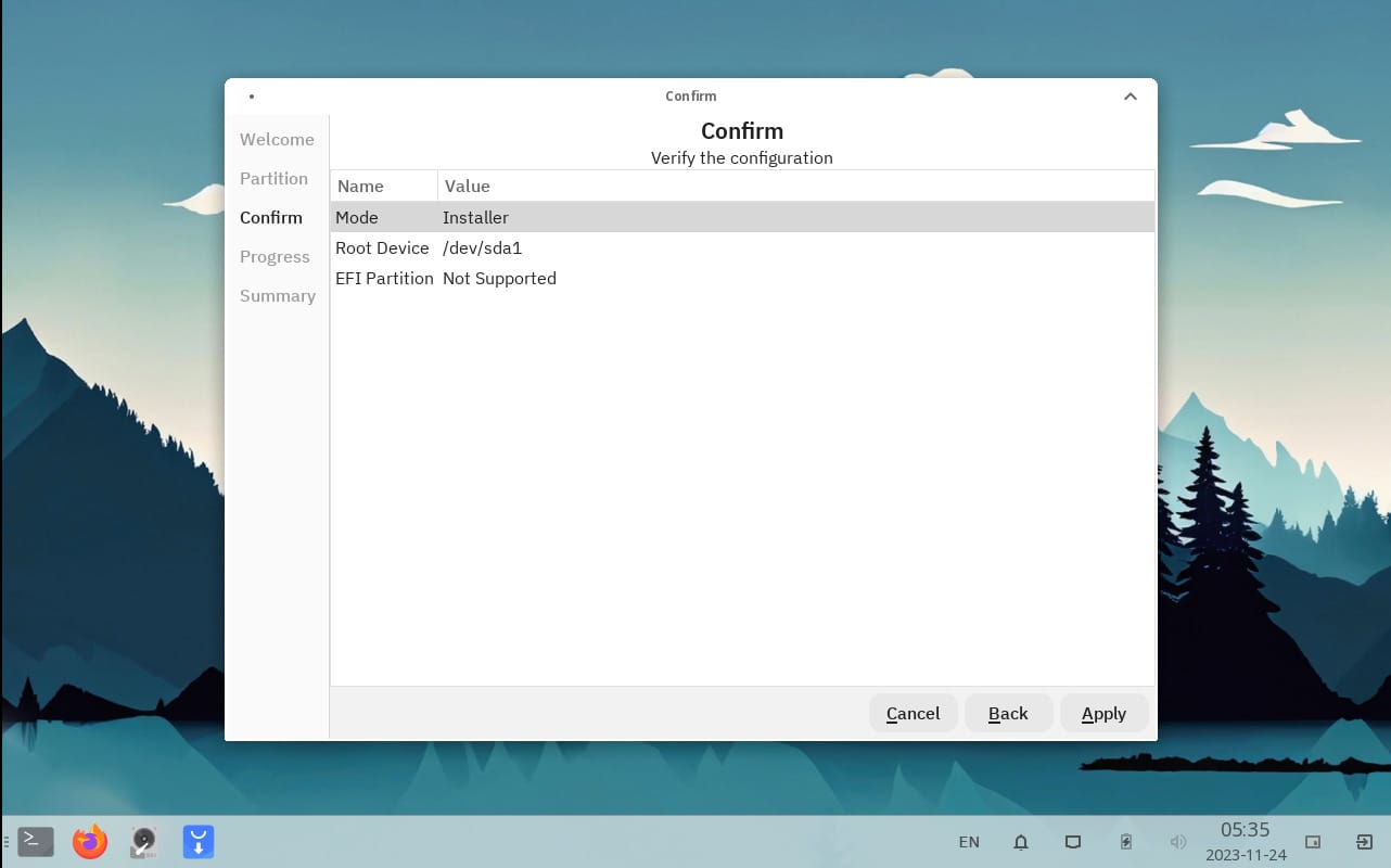 Thereafter, a confirmation screen shows up, displaying some important last-stage info. I clicked on 'Apply' to proceed.
