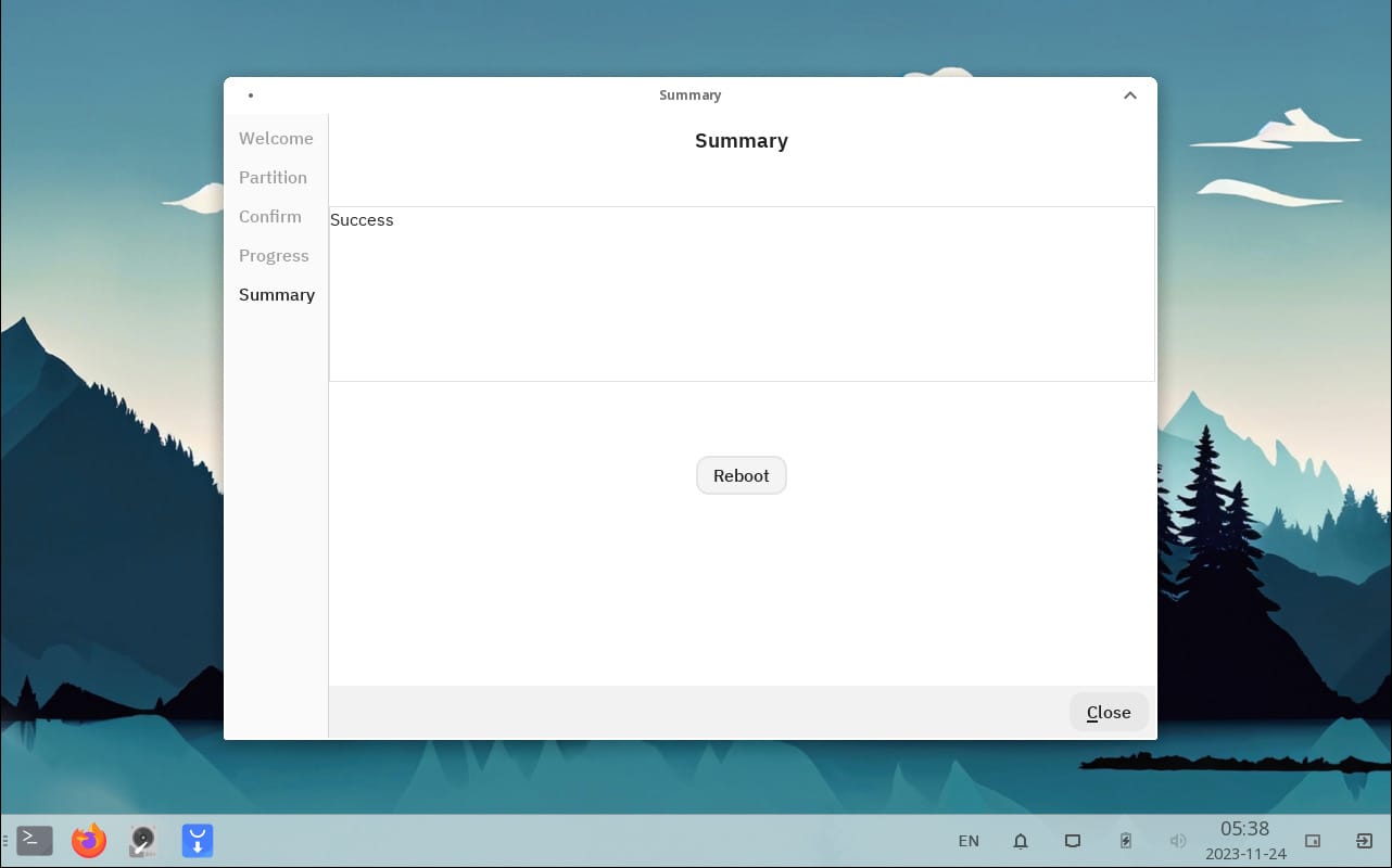 After reboot, a quick-setup wizard started, I entered the user details, and password, then rebooted again.