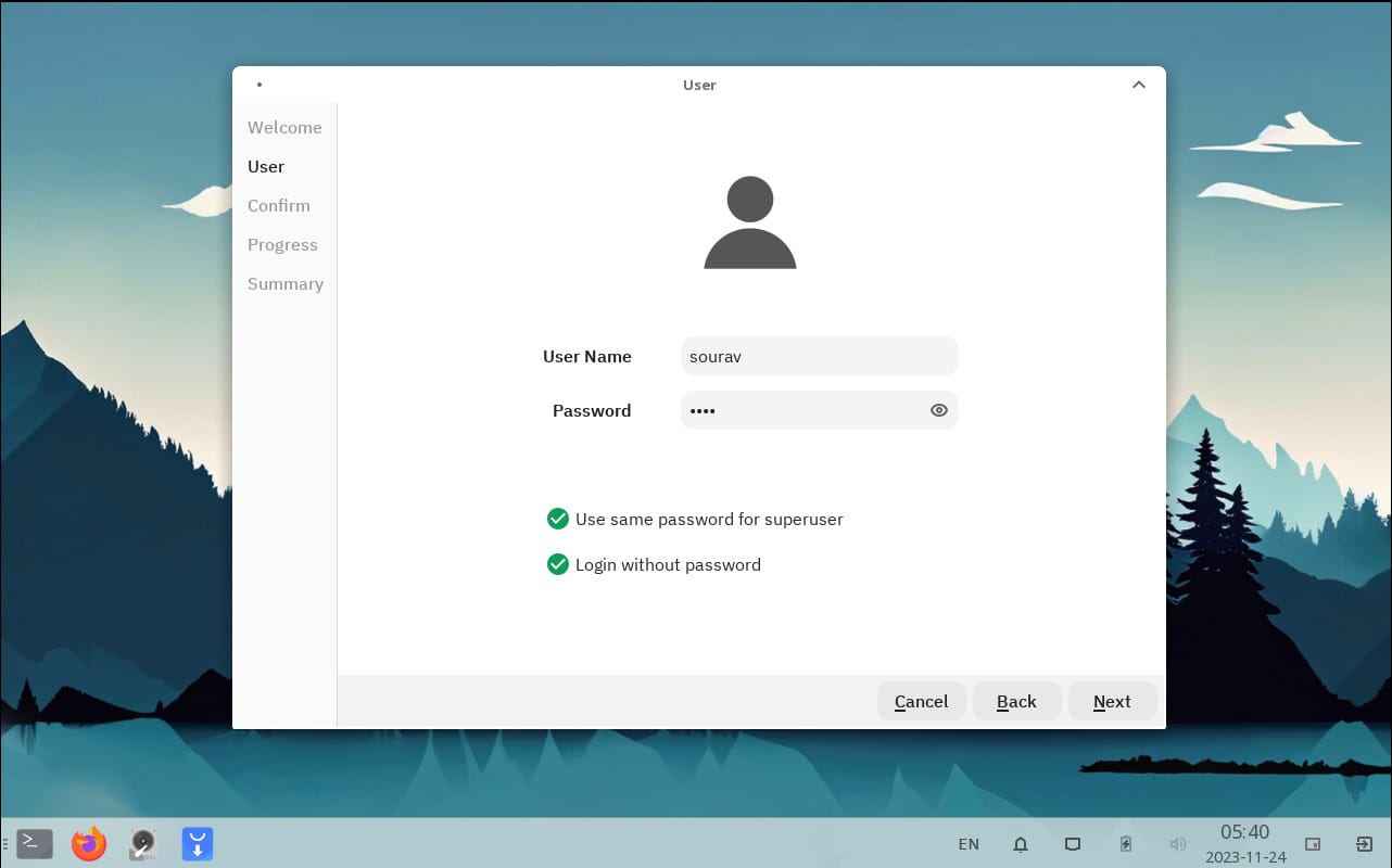 I fired up rlxOS on a virtual machine (VM) by using VirtualBox on Ubuntu. The installer looked quite pleasant to the eyes, with a nice squircle feel to it that reminded me of the Adwaita theming style from GNOME.